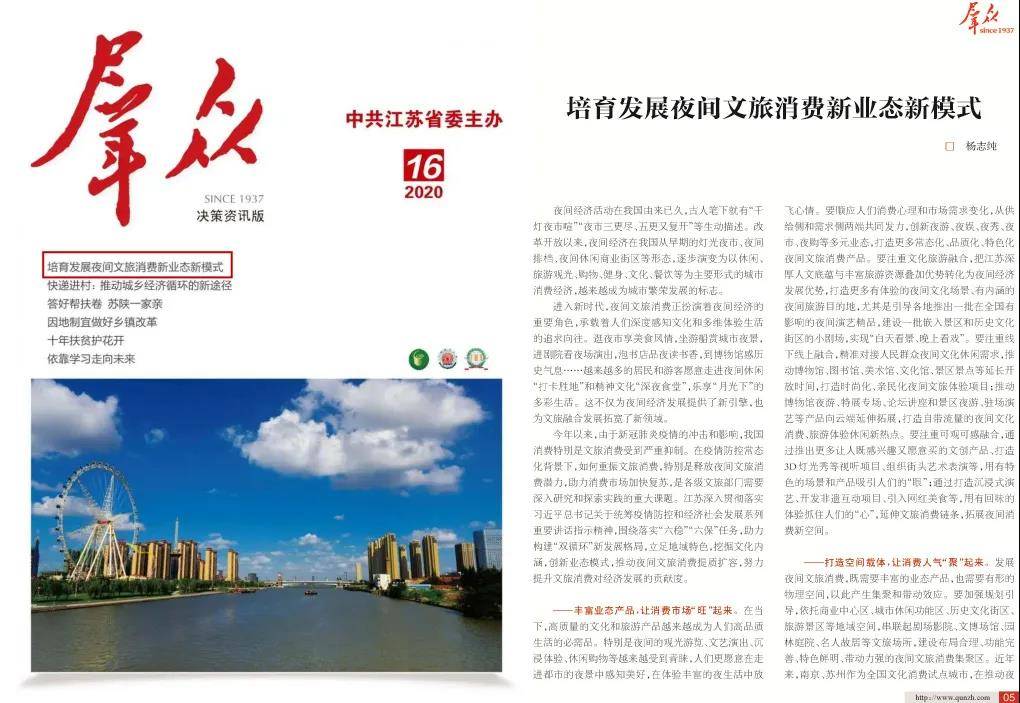 扬子晚报讯,近期,《群众》杂志2020年第16期刊发江苏省文化和旅游厅党组书记、厅长杨志纯署名文章:培育发展夜间文旅消费新业态新模式。
